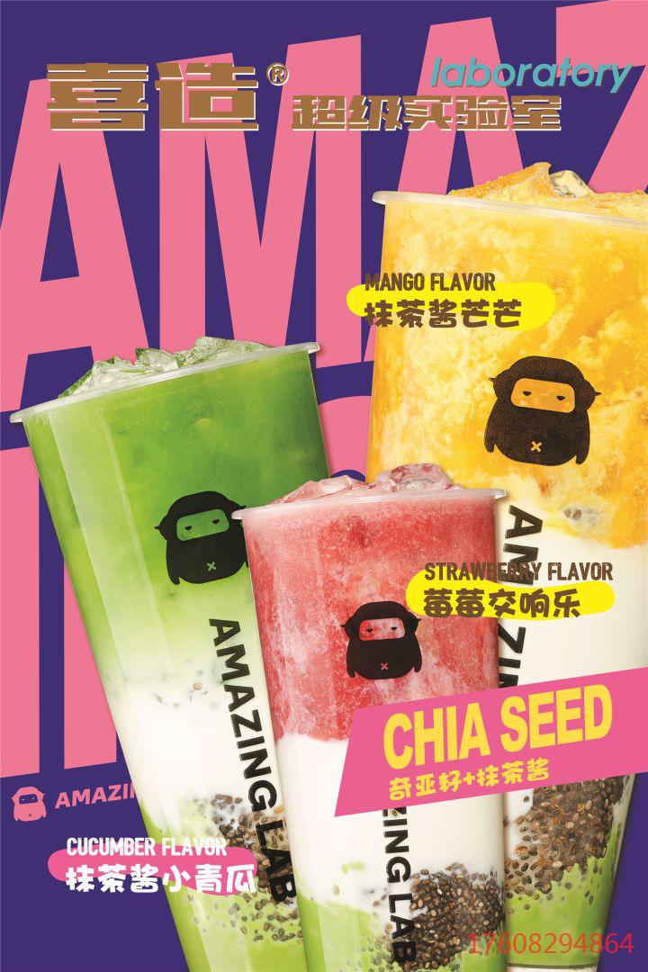 喜造奶茶的撞色设计把现代简约风与运动风全部展现了出来,十分符合年轻人的喜好。